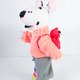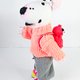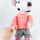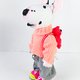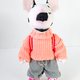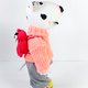 +++玩具有一个可移动的头部和手臂。 手臂内部有一个电线框架(它们可以弯曲,但次数有限)。 在腿部,身体和尾部也有一个电线框架。 扣眼缝上。