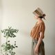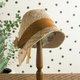 带着肉桂色、轻柔飘逸的半透明缕空丝带,这是一款散发着复古气息的草编帽。帽身采用手工编织的 100% 亚麻布料,材质透气性极佳。