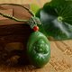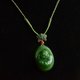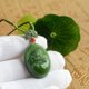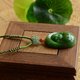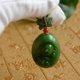 尺寸为32mm×24mm×11mm的天然俄料碧玉弥勒项链,材质是优质的天然俄料碧玉,品质上乘,色泽浓郁,有着如自然画卷一般的深浅流动变化,无黑点,质地纯净温润。正面采用阳雕工艺,线条简约而圆润流畅,将弥勒佛的形象刻画得栩栩如生,弥勒笑容可掬,神态悠然,仿佛能传递出豁达与喜乐的情绪,寓意着笑口常开、福运相伴,袖袍上雕刻简约蝙蝠纹,几笔勾勒却又神韵十足,寓意福到了。