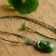 链首是一颗满肉满色的南红圆珠,搭配上精美细致的手工编绳工艺,达0.2毫米的超细绳让工艺更细致精美。链尾则是碧玉大圆珠与南红小圆珠的组合,色彩搭配和谐,与主体相得益彰。碧玉被认为能带来平和的能量,有助于舒缓情绪,而弥勒佛给予人豁达、乐观的力量,寓意驱邪避凶,迎吉迎福。袖袍上的蝙蝠纹,寓意福如影随行。这款项链如一首玉石与匠心交织的小诗,碧玉的色泽变化自然随意天然,彰显其独一无二的美,把自然之美、工艺之巧与美好寓意融于一身。