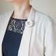 钩织/编织、手作、手工编织、蕾丝编织、胸针、花圈胸针、樱花、染井吉野樱、春天、早春、淡粉、粉红、花朵饰品、春季穿搭、赏花、毕业典礼、入学典礼、正式场合、典礼穿搭、聚餐、约会、送礼、生日礼物、母亲节、退休/转职祝福、礼物包装、优雅、精致、华丽、轻巧、上品、四季折々