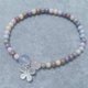 手工彩色陶瓷珠 配 雕花粉晶, 镀银蝴蝶,蓝玉髓, 弹性手链
