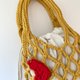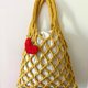 1 鈎织棉绳镂空网状托特包, 内附有绵束绳绵袋 2 尺寸: 31cm长, 30cm濶, 因网袋有弹性, 能增大至39cm长, 40cm濶 3 线材: 100%棉线 4 建议手洗及放平沥干