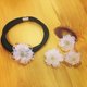 半透明のガラスの桜の花がとても可憐です。髪にフワッと桜の花が落ちてきたようです。 光学ガラスで制作した桜の花を二本どりのヘアーゴムにアレンジしております。 花の直径は3センチ程度