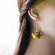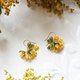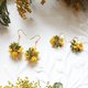 用玻璃珠编织出含羞草圆形的小小花朵,精致地点缀在其中。铜线缠绕出叶子,涂上树脂,让它们拥有饱满的姿态。