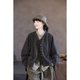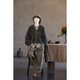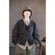 美丽的开衫式外套,因为有她,大地色系的衣服就有救了,V字领,两绳有细软的绳,软软的,系上或者随意散落都有不同的貌美。顺着领子下来是旧感纽扣,伴随着耳仔,系上或解开,都美丽。插肩袖,弱化了肩部的线条,显得人更加柔美。方型的大身,长度很好,单穿不短,配着衬衫也恰好能露出衬衫摆围的比例。