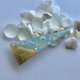 海辺に打ち上げられたピカピカ光る貝殻や水晶のかけらを