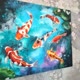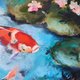 The painting "Koi in the pond" is painted with oil paints on canvas in a 50/70 cm format. The picture with carps is modern, bright, dynamic, will decorate any space, enliven the interior. A picture with Koi fish is often given as a housewarming gift, as it is believed that Koi fish bring good luck to the house.