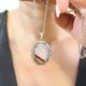 带蓝光玉随,稀有玛瑙共生,特殊宝石生成,独一无二,不同角度都有水润光泽,搭配手工坠台,突显配戴者气质与质感。