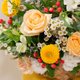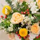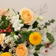 香槟玫瑰、饼干太阳花、设计师选配当季新鲜花材制作。 尺寸:约H35×W40×D25cm。