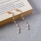 精致的链子上串连着小巧的淡水珍珠,是一款优雅的长款耳环。