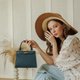 ELLE | 锁头磁扣牛皮手提包 | 小号 | 牛仔蓝