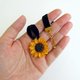 Yellow flower is made by hand from polymer clay, without the use of special forms. Each flower is unique, so jewelry you get will be slightly different from in the photo. The flower will have small differences in shape, shades of colors.