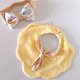 围兜背面布料:韩国天然染色皱褶二重纱,经 KC认证(无甲醛、无芳香胺、pH值合格),安全无刺激。