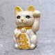 清水烧的招财猫,以优雅的杏色为主调,融合金色点缀,展现出高贵且温暖的花结晶工艺✨。