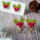 - **\ 限时贩售 至12月25日 /** 用绣花线编织的浅绿冬青耳环/耳夹 我精心制作了耳环