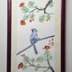 松树小鸟手绘原创水彩画 一只蓝色小鸟栖息在一棵松树上 2025世界文创全能艺术绘画比赛公开组金奖 30x50cm 不含画框