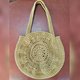 圆形包袋,采用柔软的漂白绳编织而成,肩带编织有星星图案,长度足够,可以挎在肩上。包口有内衬,有拉链。