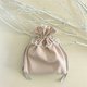バックサテンアムンゼン生地を使用して、パールをあしらった巾着ポーチです。