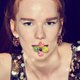 It's a vivid neon color and astrewn with star dust snowball that flutters whenever it moves.