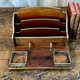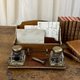 50194-典藏法国古董胡桃木信件架含双水晶墨水罐(English Description below)