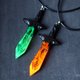 Handmade pendant in the shape of a sword from black hornbeam wood and resin with.