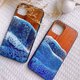 花梨木的木质纹路与质感,搭配美丽的海浪,独一无二的手机壳