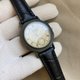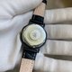 ✧雾面八角灰黑表壳,罗马时标与轨道式浅黄表盘,黑色真皮表带,特殊秒针设计。