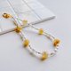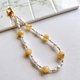 💠 材质:日本包芯棉线、日本弹性金钢丝、ABS珍珠、14K镀金扣锁、编织布+PVC吊绳挂片