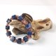【特征】运用金太阳与蓝纹石搭配串联而成的手串。颜色红与蓝的搭配,十分鲜艳夺目。使用了多颗方形素材,加强手串的沉着和稳重感。另外再加上一颗大的金太阳随形做点缀,增强人的自信与热情,凸显个性。具有领导风范的一条手串。