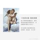 画面中,邱比特亲吻着普赛的脸颊与她相拥而坐在松软的云上,透着恬静温和的氛围,以孩童模样出现的他们,也将两小无猜那样青涩、纯洁的爱崭露在这幅画作,画家透过精巧的展色与柔滑的笔触,使整体更加细腻、精致,让一切看起来温馨的恰到好处,也将两人那一见钟情的美好爱情体现的淋漓尽致。