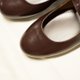 Smooth oil leather / Leather and rubber sole / Leather insole / Leather button and elastic fastening / Heel height: 2 cm / Small pin markings on the inner sole are characteristic of the traditional handmade work / Hand made in Thailand