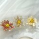 透明波斯菊花瓣佩戴在耳上,散发晶莹剔透、隐隐若现的感觉,并带有珠光闪烁。