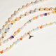 彩色日本与捷克串珠、4mm 天然淡水珍珠、14K注金龙虾扣与延长链。