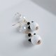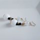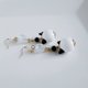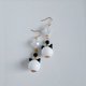 这款别致的耳环/耳夹,以可爱的黑耳白猫造型蜻蜓珠饰为主体,搭配 8mm 的、颇具存在感的渐层白色火焰抛光捷克珠,以及小巧的玻璃珠等。