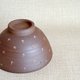 此作品经过多道工序精心制成:选用信乐烧的陶土,经辘轳塑形后,再精细削出碗身表面与纹饰,接着素烧,然后在纹饰处填入白色泥浆并拭去多余部分,内里施以青瓷釉,最后高温烧制而成。碗身厚度适中,握持舒适,碗口触感滑顺。内侧则有美丽的冰裂纹。