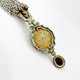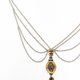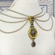 项链采用三股链条设计,展现宫廷珠宝般的层次感与庄严气势。繁复的浮雕与卷草纹细节,结合石榴石的浓烈色泽,完美体现奥地利十九世纪珠宝工艺的精致与奢华——无论作为收藏、典藏展品,或是搭配正式服饰,都能展现历史主义时期的艺术风华与帝国气度。