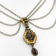 🏛️ 这件源自奥地利历史主义时期的精美项链,展现出帝国时代的华丽与浪漫。主体以双色银质(金色镀层与银色底座)交织,勾勒出立体的复古造型。中央镶嵌奥地利最具代表性的 波希米亚石榴石,以深邃酒红色光泽彰显高贵典雅,并在吊坠下方搭配椭圆切割石榴石,增添垂坠的动感之美。