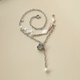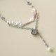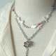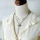 这一款Y字体结构的颈链,就好像打呔一样,有别于之前的款式,粗链条存在感比较强烈,中间有一朵牡丹花,象征繁荣。而整条颈链都用上了10款不同形状颜色的淡水珍珠,有菱形,长条型,水滴型,花瓣型,因此玩味十足,充满个性!