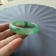 【天然非洲翠飘绿圆条手镯】尺寸:52.7 x 11.8 x 8.4 mm 台湾围:#17.2 整只飘绿的非洲翠手镯,气质优雅,肉质像果冻般细腻,上手非常美。