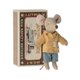 穿着可爱的黄格休闲衬衫和舒适的牛仔宽裤,经典的小鼠哥哥住在精美插画的火柴盒内,火柴盒里有着一张可爱柔软的小床,采用柔软的面料织制。 maileg 经典小鼠系列采用拥有欧陆和台湾双重安全检验合格的纯棉材质,是孩子玩耍最放心的可爱好朋友,也是大孩子最爱的收藏,快来带她们回家吧~ ❤ 材质:100% 纯棉 100% 聚酯填料 尺寸: 小鼠哥哥 约 13cm 高 适合年龄:3岁以上 洗涤建议: 温柔的手洗或是轻柔机洗,水温不超过30度