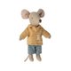 火柴盒里的小床,有着一个小鼠哥哥,穿着可爱的黄格休闲衬衫和舒适的牛仔宽裤。