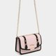 洗练简约的翻盖信封包设计,搭配黑色滚边,粉红色红色与黑色组合,优雅的色调中带来一点点率性的氛围。