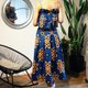 这款多用途紧身胸衣采用色彩鲜艳的非洲尼日尔尔利亚面料制成,并配有精致的薄纱。