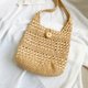 Handmade。夏日手工拉菲草编织奶茶大扣子侧背包