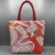 这款包包采用粉红色布料,搭配银色和粉红色的刺绣腰带,整体风格非常女性化且华丽。