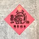 把贺年的吉祥字词、图样书画在红色纸上,