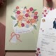 此款灵感源于日文的花嫁 はなよめ,意为新娘,有花朵熟成的美好时刻,正是要出嫁之时。由新娘捧花作为封面图像,花中的新人正要一起奔向美好的未来,书夹背后希望老的时候还可以再一次穿上婚纱,也有携手到老的含义。