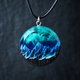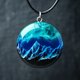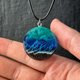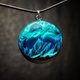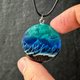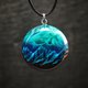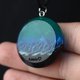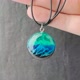 由黑色角树木和树脂制成的手工圆形吊坠,里面有山。
