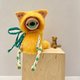 猫咪静静地坐着,用它那单独的魔法之眼观察着周遭的一切。小铃铛和缎带为它增添了俏皮的魅力,而它细长的点点腿则赋予了它古灵精怪的个性。每个细节都经过精心手工制作,使这款艺术娃娃真正独一无二。